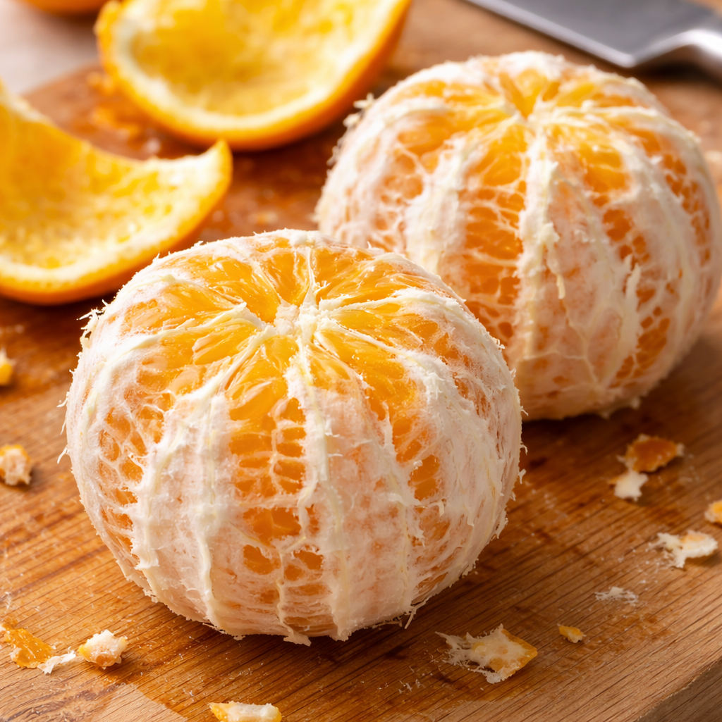 오렌지를 먹을 때 과육에 붙은 하얀 속껍질을 제거하는 경우가 많다. 하지만, 이 부분에는 ‘헤스페리딘’ 성분이 풍부하다. 이는 혈관을 튼튼하게 하고 항산화 작용을 돕는 플라보노이드로, 흔히 비타민P로 불린다. 콜레스테롤 관리나 혈액순환 개선을 원한다면 오히려 함께 먹는 것이 좋다.